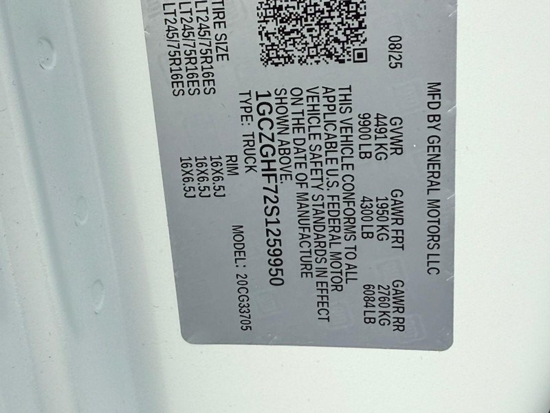 - VIN : 1GCZGHF72S1259950