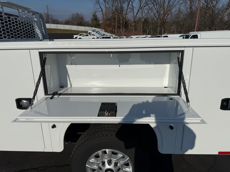 Summit White 2025 Chevrolet Silverado 2500HD Work Truck 4WD 10-Speed Automatic 6.6L V8 10-Speed Automatic, 4WD, Jet Black Vinyl. KNAPHEIDE SERVICE BODY WITH BACK RACK AND GRILL LIGHTS