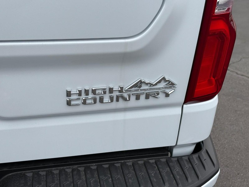 Polar White Tricoat 2026 Chevrolet Silverado 1500 High Country 4WD 10-Speed Automatic EcoTec3 6.2L V8 10-Speed Automatic, 4WD, Blue Leather.