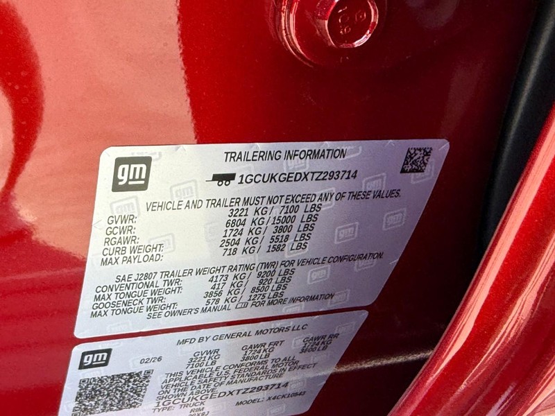 Radiant Red Tintcoat 2026 Chevrolet Silverado 1500 LTZ 4WD 10-Speed Automatic EcoTec3 5.3L V8 10-Speed Automatic, 4WD, Gideon/Very Dark Atmosphere Leather.