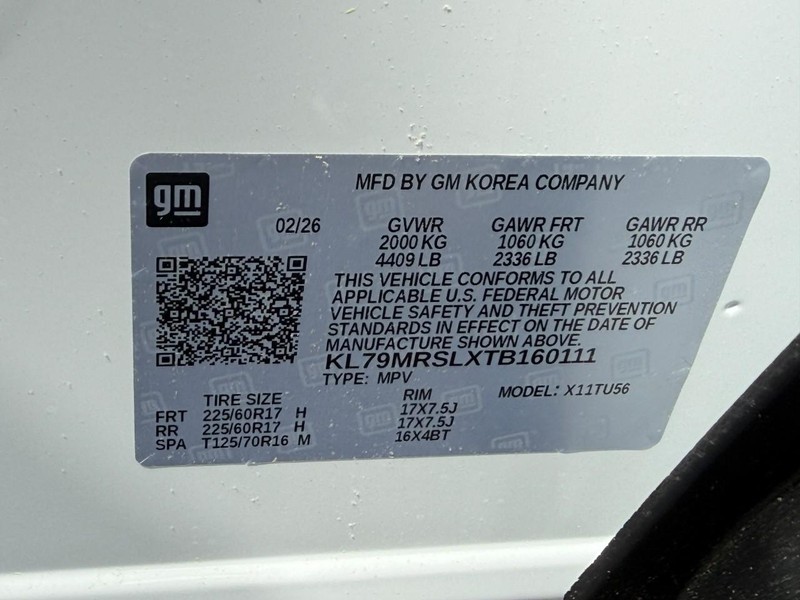 - VIN : KL79MRSLXTB160111