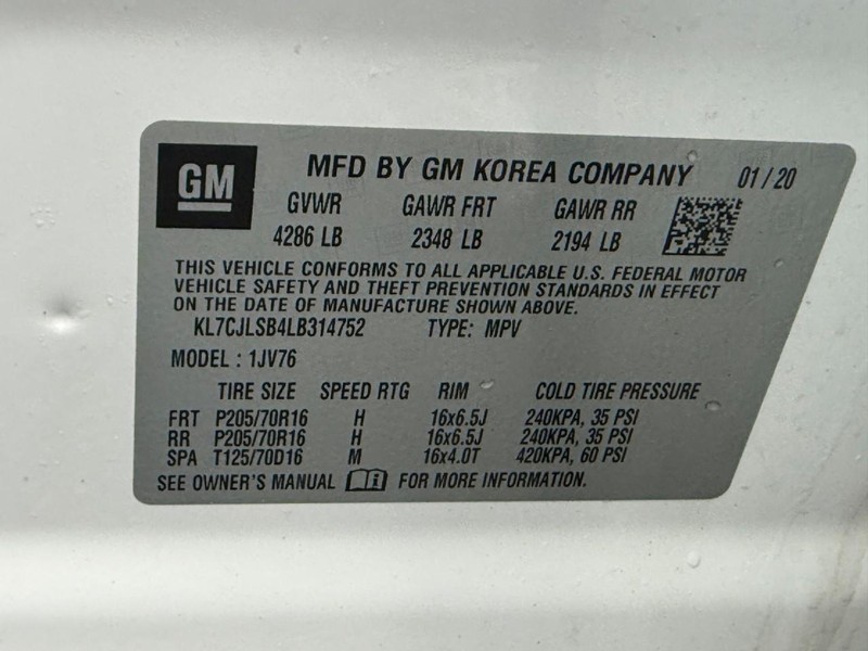 - VIN : KL7CJLSB4LB314752