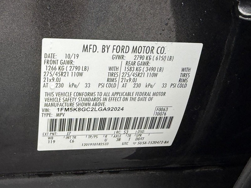 - VIN : 1FM5K8GC2LGA92024