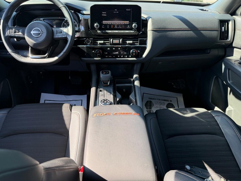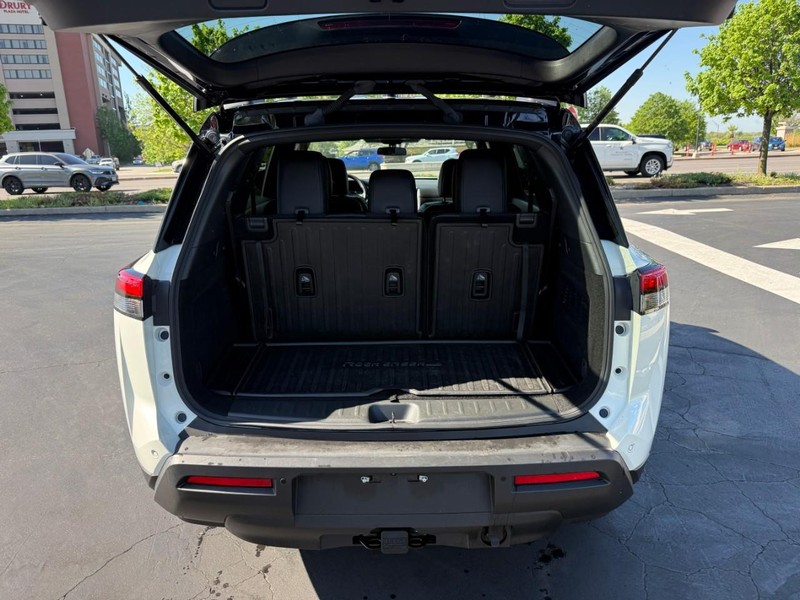 2023 Nissan Pathfinder Rock Creek **ANOTHER WEBER 1-OWNER VEHICLE**, **BLUETOOTH HANDS FREE MOBILE**, **KEYLESS ENTRY**, **REMOTE START**, **REAR VIEW BACKUP CAMERA**, **LEATHER SEATING**, **REMAINDER OF FACTORY WARRANTY**, **USB PORTS**, **SUPER CLEAN**, **4G LTE WI-FI HOTSPOT**, **BLIND ZONE MONITORING**, **FORWARD COLLISION ALERT**, **APPLE CAR PLAY**, **CLEAN VEHICLE HISTORY REPORT**, 4WD, 3rd row seats: bench, 4-Wheel Disc Brakes, 6 Speakers, ABS brakes, Air Conditioning, Alloy wheels, AM/FM radio: SiriusXM, Auto High-beam Headlights, Automatic temperature control, Black Splash Guards (Set of 4), Brake assist, Delay-off headlights, Dual front impact airbags, Dual front side impact airbags, Electronic Stability Control, Emergency communication system: NissanConnect Services, Front dual zone A/C, Front fog lights, Fully automatic headlights, Heated door mirrors, Heated Front Bucket Seats, Knee airbag, Leatherette Seating Surfaces, NissanConnect featuring Apple CarPlay and Android Auto, Occupant sensing airbag, Overhead airbag, Panic alarm, Power door mirrors, Power driver seat, Power steering, Power windows, Radio data system, Radio: AM/FM Audio System w/NissanConnect, Rear air conditioning, Rear Parking Sensors, Rear side impact airbag, Rear window defroster, Reclining 3rd row seat, Remote keyless entry, Rock Creek AS Floor Liners & Cargo Area Protector, Rock Creek Roof Rack, Roof rack, Security system, Speed control, Split folding rear seat, Spoiler, Steering wheel mounted audio controls, Telescoping steering wheel, Tilt steering wheel, Traction control, Turn signal indicator mirrors, Wheels: 18" Beadlock Styled Design.