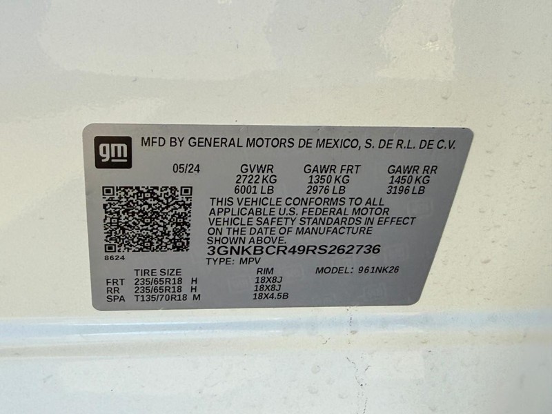 - VIN : 3GNKBCR49RS262736
