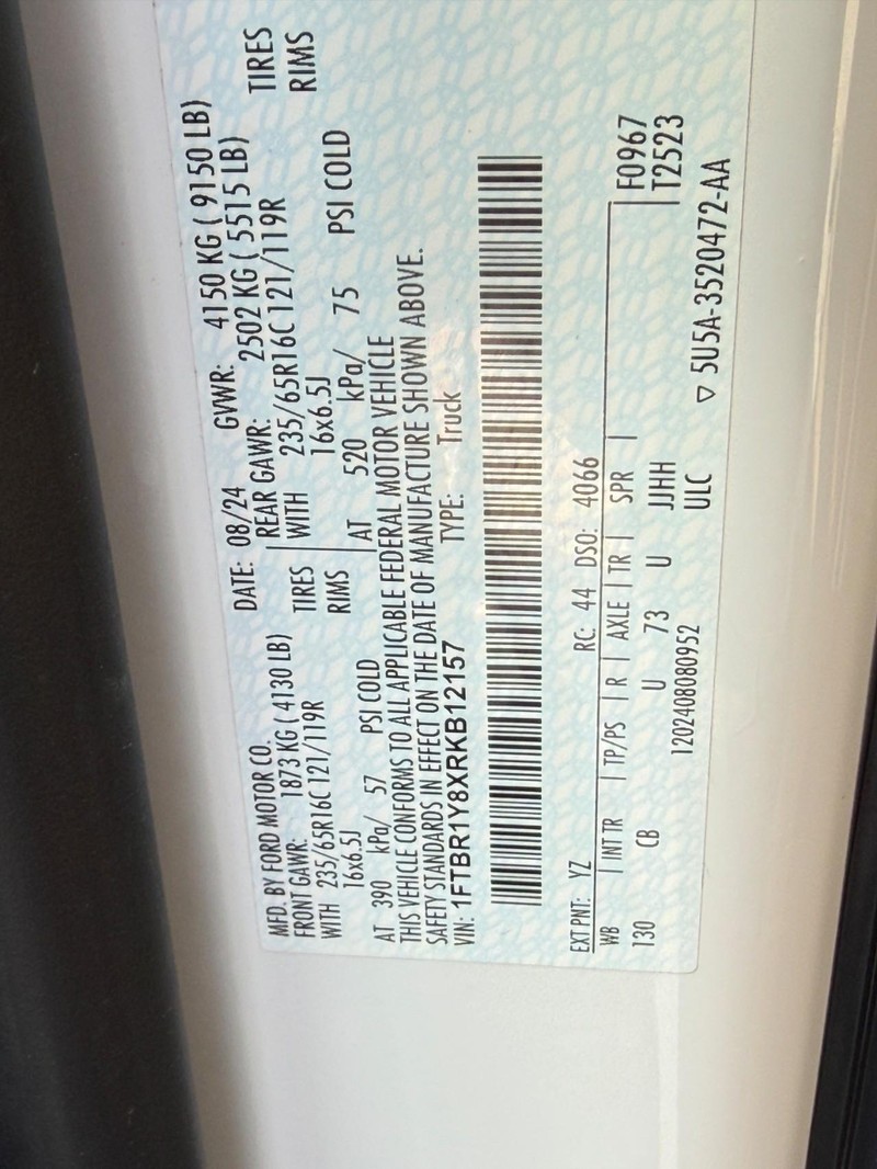 - VIN : 1FTBR1Y8XRKB12157
