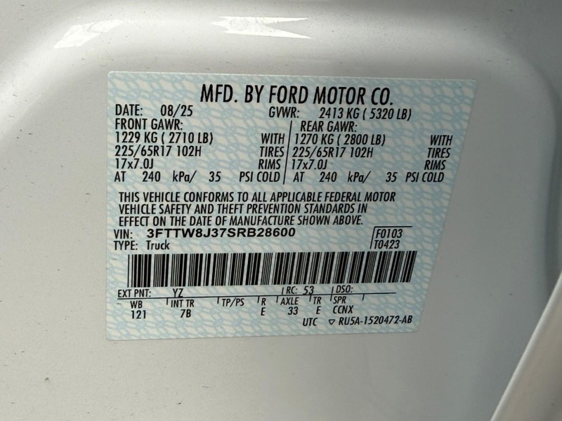 - VIN : 3FTTW8J37SRB28600